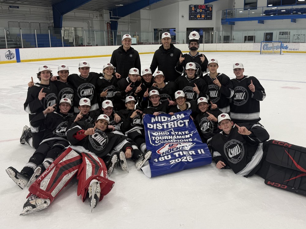 COLUMBUS, OH (October 2025) — The Columbus Chill 18U National Team clinched the Mid-Am Ohio State Championship for the second consecutive year, earning a berth to the USA Hockey Tier II National Championships in West Chester, Pennsylvania, March 25–29.